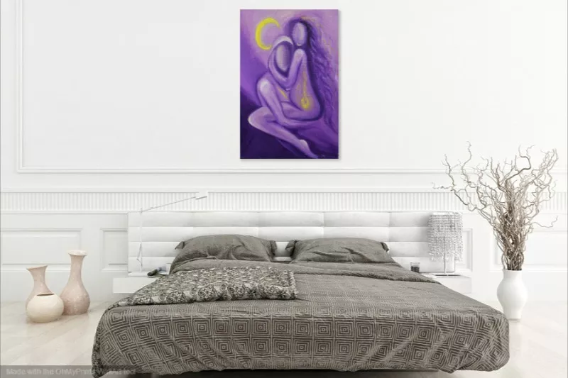 The painting is from the series of artworks "Lovers". The idea is to show the feelings and emotions on canvas. You can feel the love and sensuality that comes from the artwork.