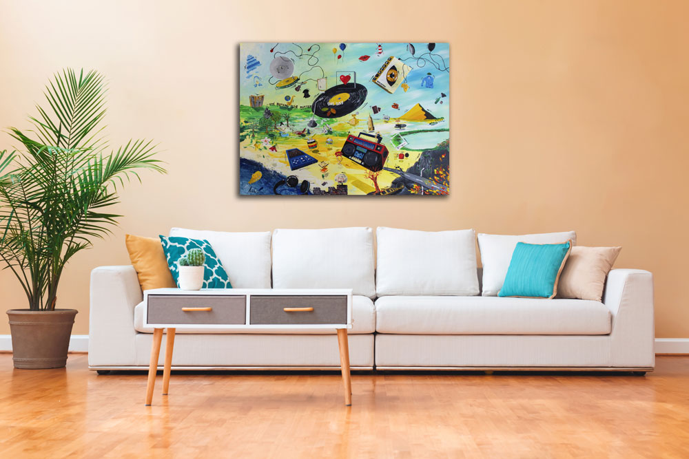 It was a great month working on this painting. Recalling old songs that I haven’t listen to for ages and really looked back on the path that many of these songs helped me through. So it is my pleasure to present you with a painting with 54 referenced songs from various genres of music. That somehow made an impact on my life! Besides the songs, there are 4 basic elements involved that are dividing the painting into four pieces. Alongside the devices, that I’ve used throughout my lifespan so far. And just for your imagination, here is the list of the first ten songs that are depicted in the painting. The rest of them you can try to decipher for yourself.