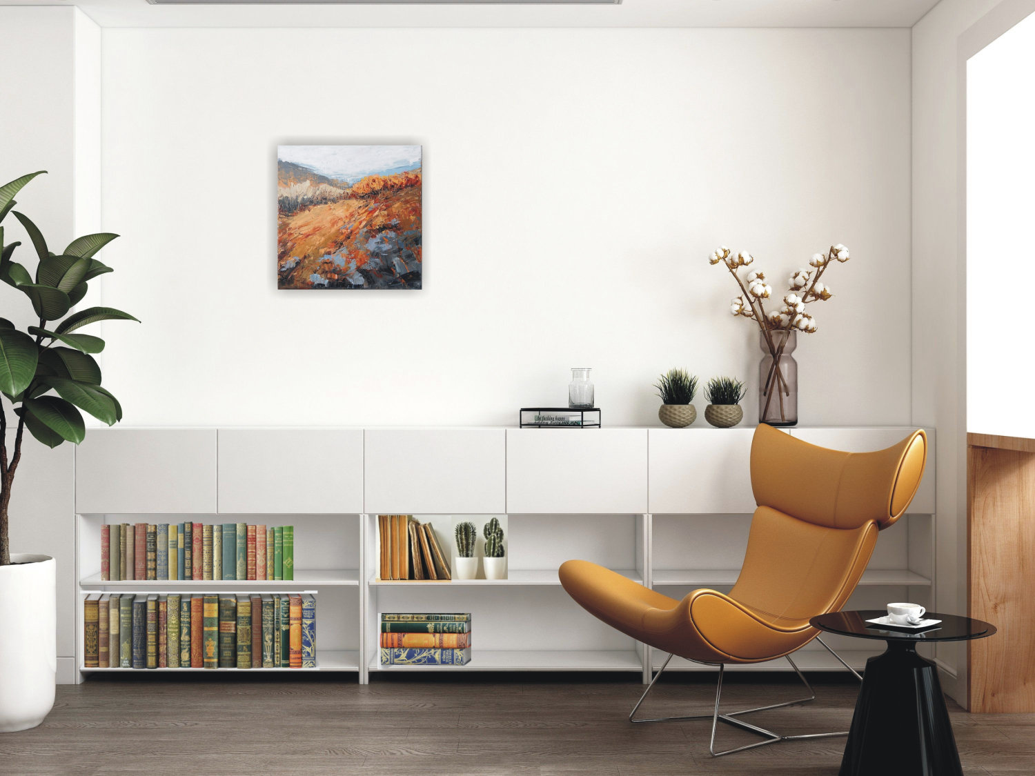 This original oil painting is made on stretched cotton canvas. Size is 40x40cm. Depth 1 cm. Canvas is gallery wrapped and painted on the sides, so the painting could be hang as it is without a frame if preferred.