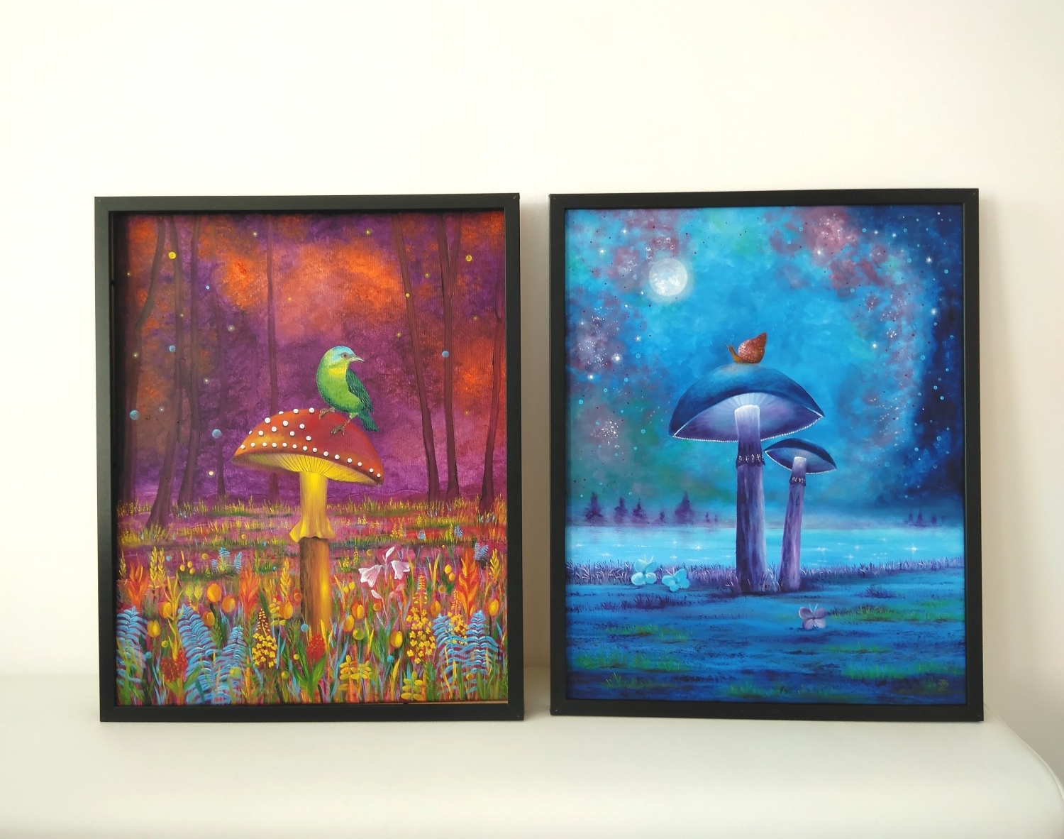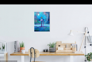 “One night at the lake” is an oil painting with surrealistic style and was created on canvas. It is inspired by nature but with a more magical approach. It is an ideal choice for a kid’s room.
