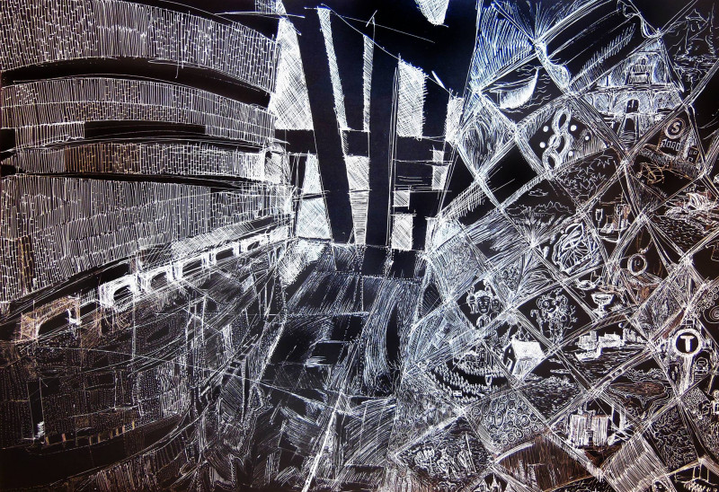 “Opera House Oslo” is a conceptual line drawing on paper with an abstract style.