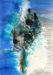 That quiet calm moment of awakening of a woman. Delicate blue shades show the mysterious moment of self-discovery. Two birds inside her soul start to sing her own song.