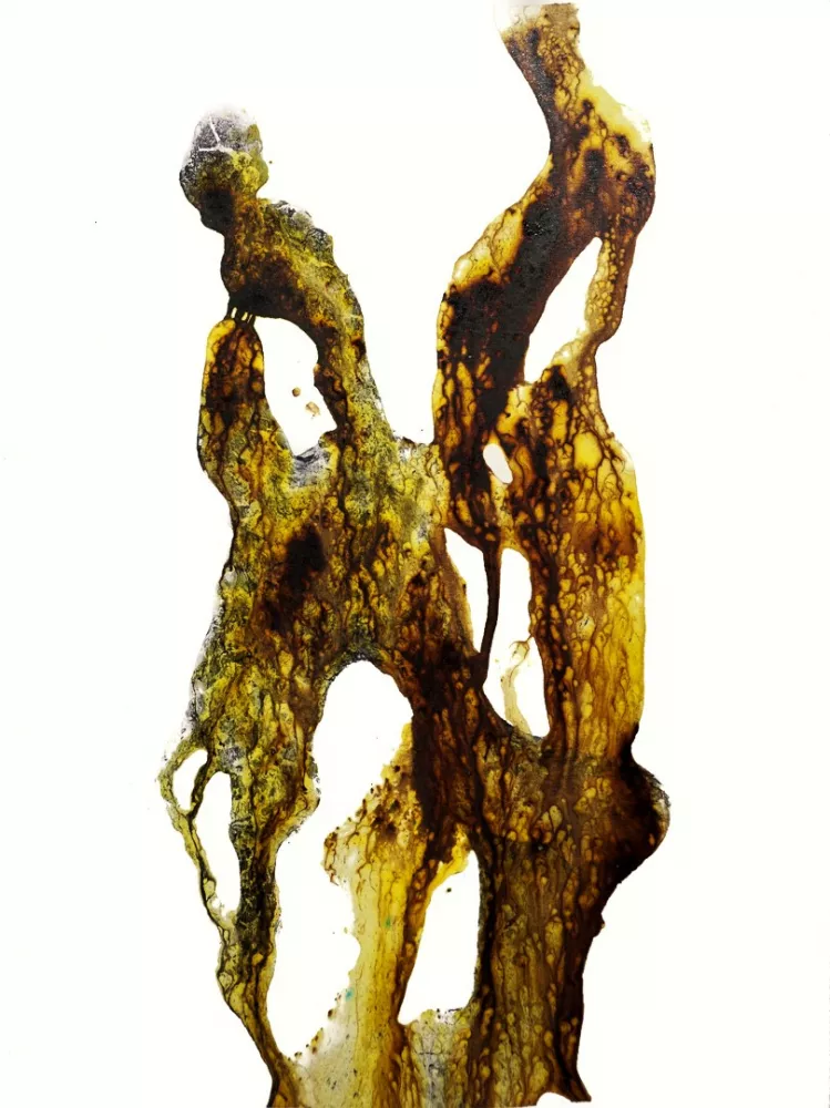“Closer” is a painting with a minimalistic and expressionistic style that was painted with ink on paper. This painting portraits the feeling of being very close in a flow of energy.