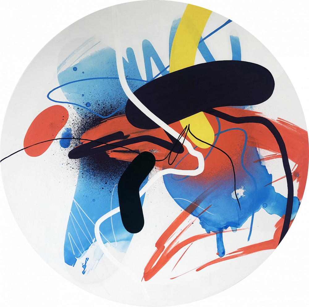 The artwork is filled with the fascination with lines that develops into an infinite variety of shapes in an abstract composition. At the beginning of each painting, there is a random blot at first glance, although there is no place on the canvas of coincidence and everything has a fixed order.