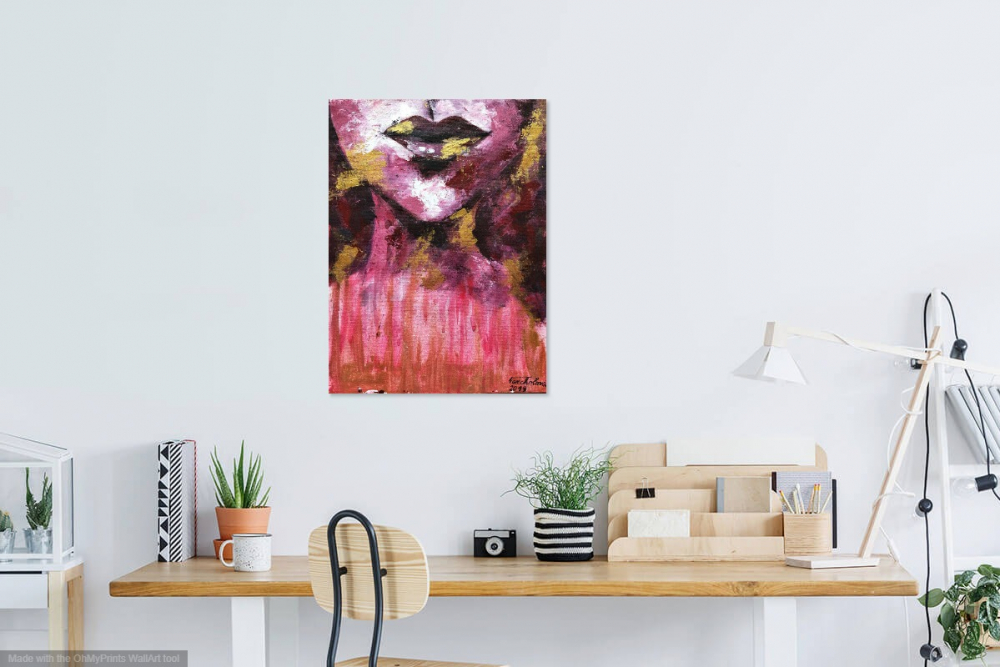 Using romantically charged colours such as gold, pink, and red, I used acrylic paint to depict the feelings of excitement, passion, and enchantment. This painting will flood any space with that exact energy.