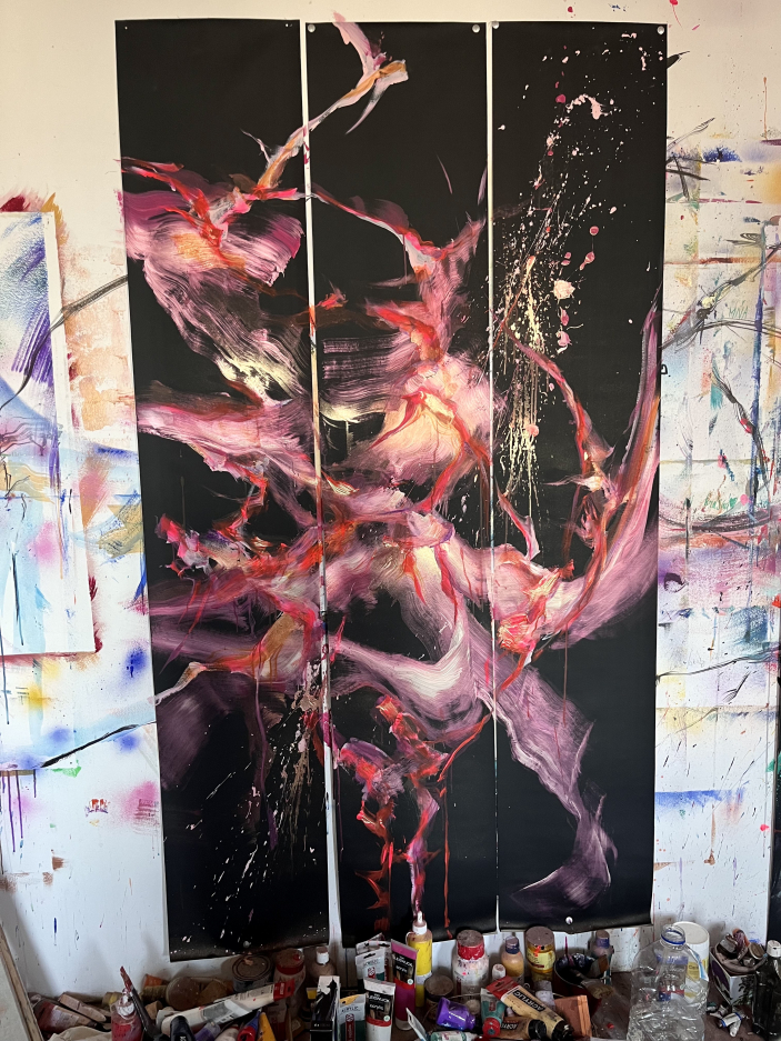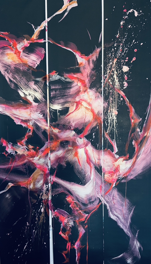 This vibrant triptych is a stirring exploration of transformation, resilience, and rebirth. The work draws viewers into a journey of dissolution and renewal through bold abstraction and visceral colour.