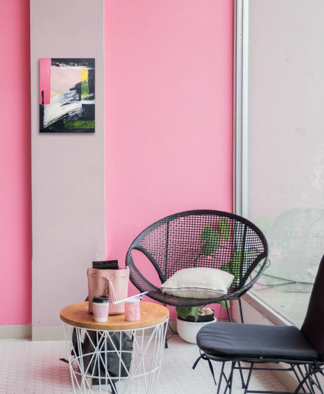 “Pink and Black” is an acrylic painting made on canvas with both minimalistic and abstract styles. With its great size of 30 x 40cm, it would fit perfectly in every space in your home or your office.
