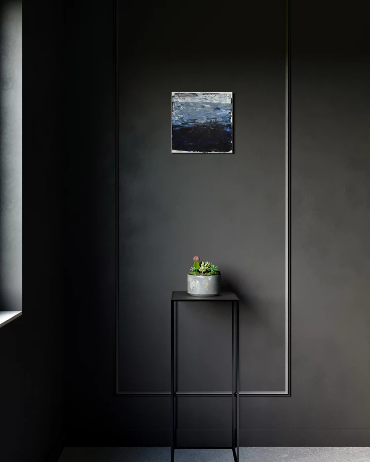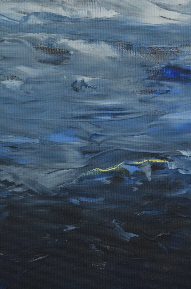 With every winter, more and more people come to terms with the fact that our climate changes rapidly for the worse. Although the planet cycles through drastic changes on it's own, humans leave irreparable prints wherever they set camp. This painting does not seek to scold, it's a mere timeline. The top layer represents what Ice is left slowly melting into a dark abyss.