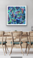 ”Positive Vibes” is an acrylic painting made on canvas with both modern and abstract style. Positive Vibes here means longer strokes, bright colors, and layered spontaneous expressions. If you want some positivity in your space, this painting is ideal for you.