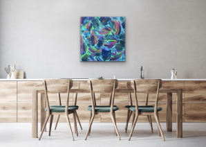 With her vibrant abstract paintings, Valentine is able to draw you into a world of emotion and exploration. Due to her experiences living abroad, she cultivated a desire keep improving and further developing herself. As can be seen through her paintings, Valentine takes an energetic approach to life. Get to know Valentine more here.