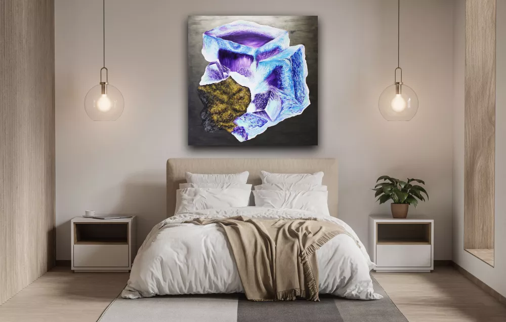 „ Precious object “ painting still remains one of my favorite paintings. The visual diversity of crystalline forms is extremely rich. I was fascinated by the depth of a particular object in this case, which hypnotically attracts the viewer's attention. The variability of structure and texture renders another dimension of the crystal.