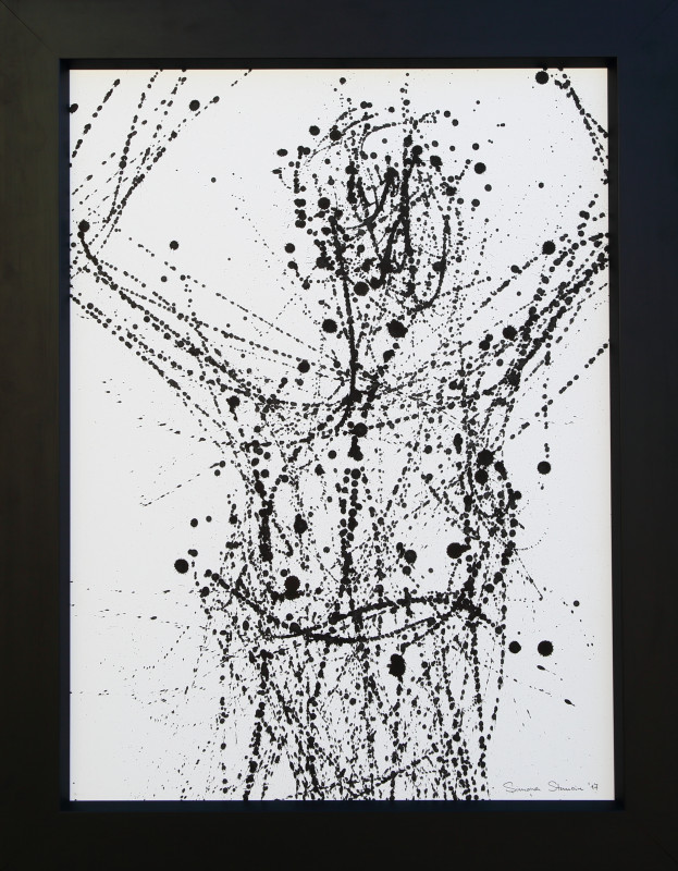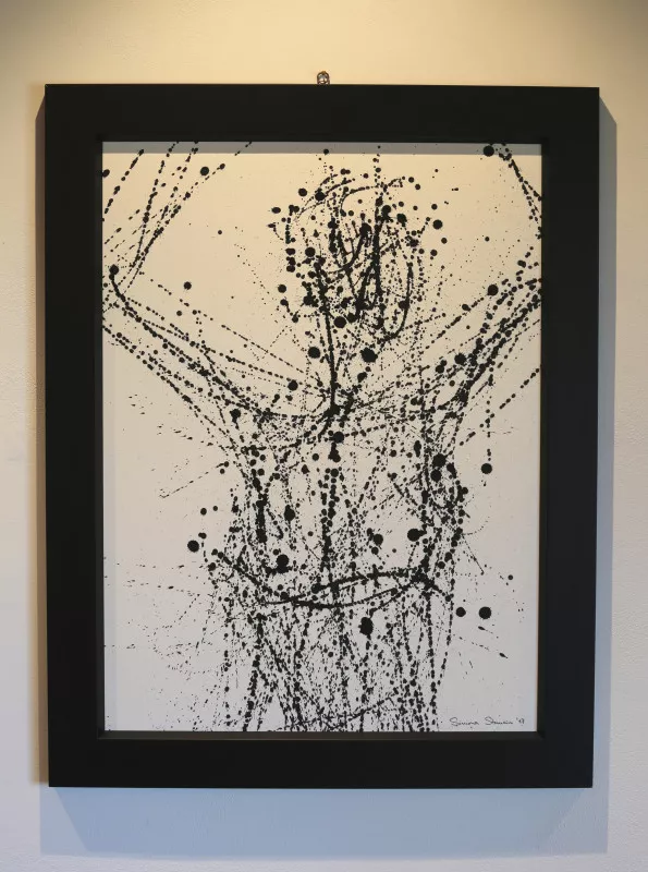The painting invites to reflect on being and on the body-mind bond, but also on the woman figure and feminism, given the subjects represented. The technique used in these paintings is mainly action painting, a "dripping art" procedure inspired by the Jackson Pollock method, but instead of totally abstract and informal result, it has a strong figurative characteristic. The color, ink, in this case, is spontaneously splashed and drained over the surface of the painting.