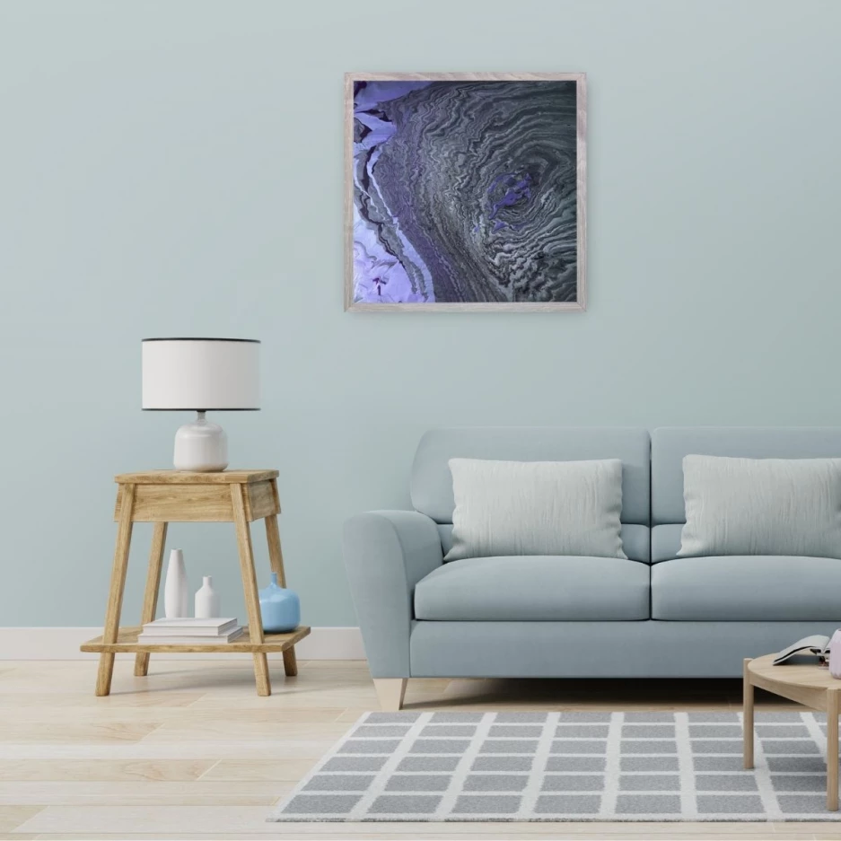 Purple grey is an acrylic painting on canvas with an abstract style. With the eye-catching design and the beautiful color of grey and purple, your spaces could get an entire new atmosphere!