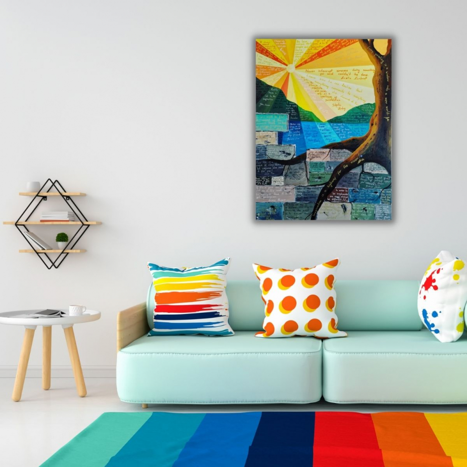 As an artist and a painter I also had to add two of my own, that I love to live by and to put them everywhere are written on the tree. Otherwise, the point of the painting is simple; FOCUS.