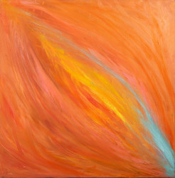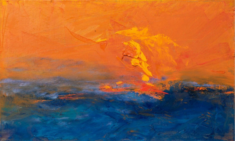 “Ray” is a painting made on canvas with oil and golden leaves.With its abstract style and its great size of 50x30 cm, it would fit perfectly in wide and open spaces and would fill the emptiness of a room. This artwork will make you think of a warm sunset at the seaside every time you look at it.