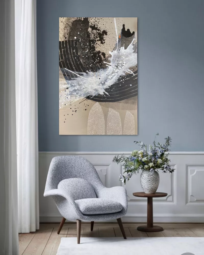 With its abstract style and its great size of 120x80 cm, it would fit perfectly in wide and open spaces and would fill the emptiness of a room!