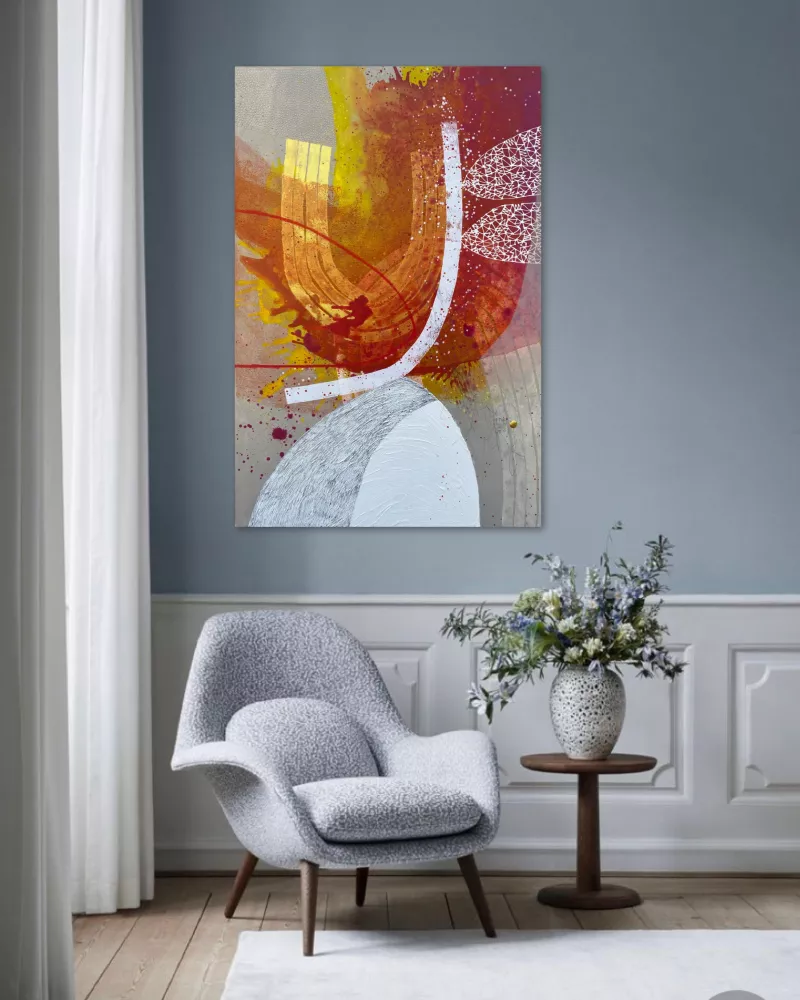 With its abstract style and its great size of 120x80 cm, it would fit perfectly in wide and open spaces and would fill the emptiness of a room!