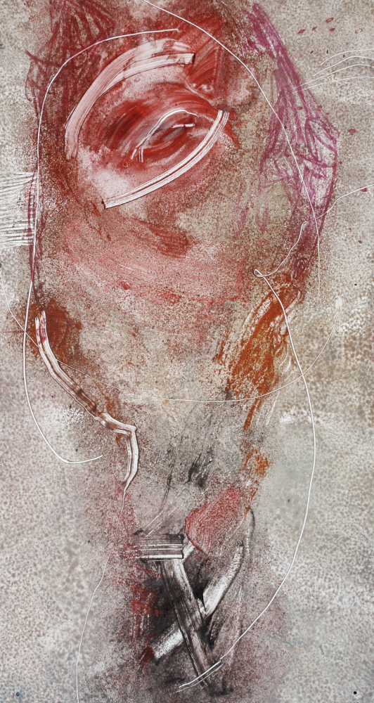 It is made on the plate. Part of the "Red" series. Presented during the exhibition "Palimpsest" at LiTE-HAUS Galerie + Projektraum in 2019.