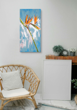 Check out this Strelitzia oil painting, where the flower emerges from layers of paint and silver foil, resembling the texture of a fresco. Beyond merely depicting the flower, I aimed to convey the importance of revelation, even for vibrant and exotic blooms. The Strelitzia serves as a visual metaphor for human existence.