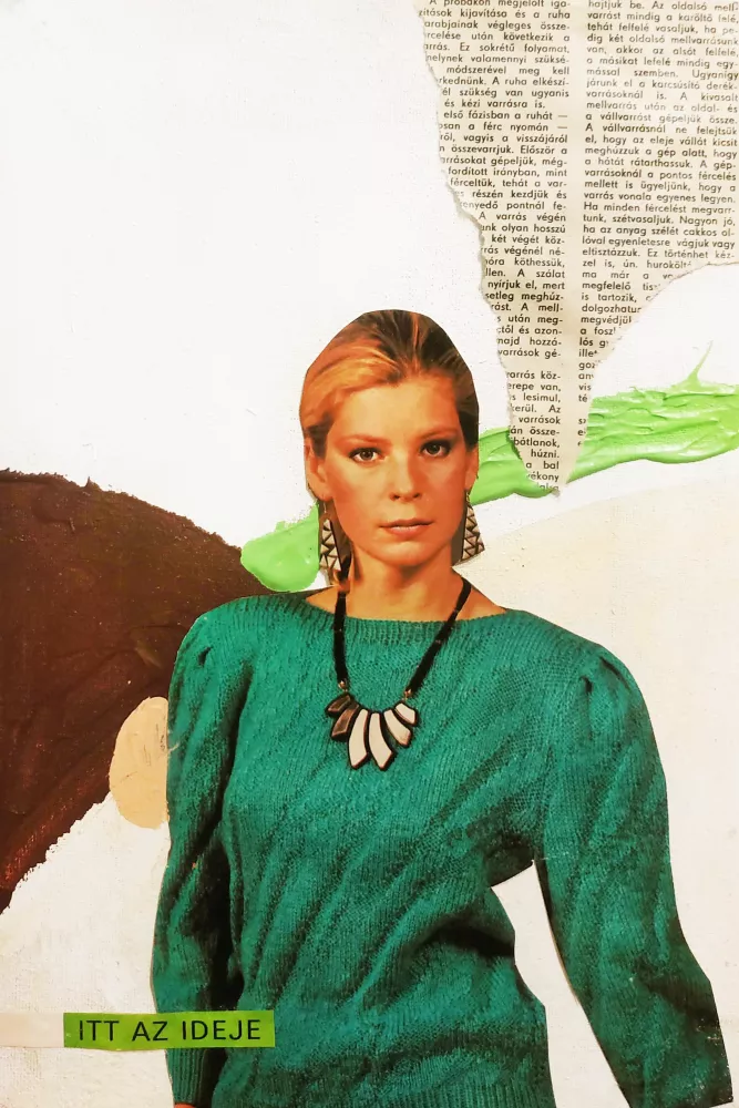 My collages associate with and shape themselves in relation to today's society, with some irony and satirical tone. I combine traditional painting techniques with the modern, glossy and shiny world. I try to present this duality in a harmonious way. My works are usually based on printed photos and headlines, or even full pages of women's magazines that have attracted my interest. The final image is formed in my head based on a fragment of a photo or title, or even the color of a page which I must in all conditions liberate from the magazine's captivity to raise all this to a higher level: the perfection created by mass media.