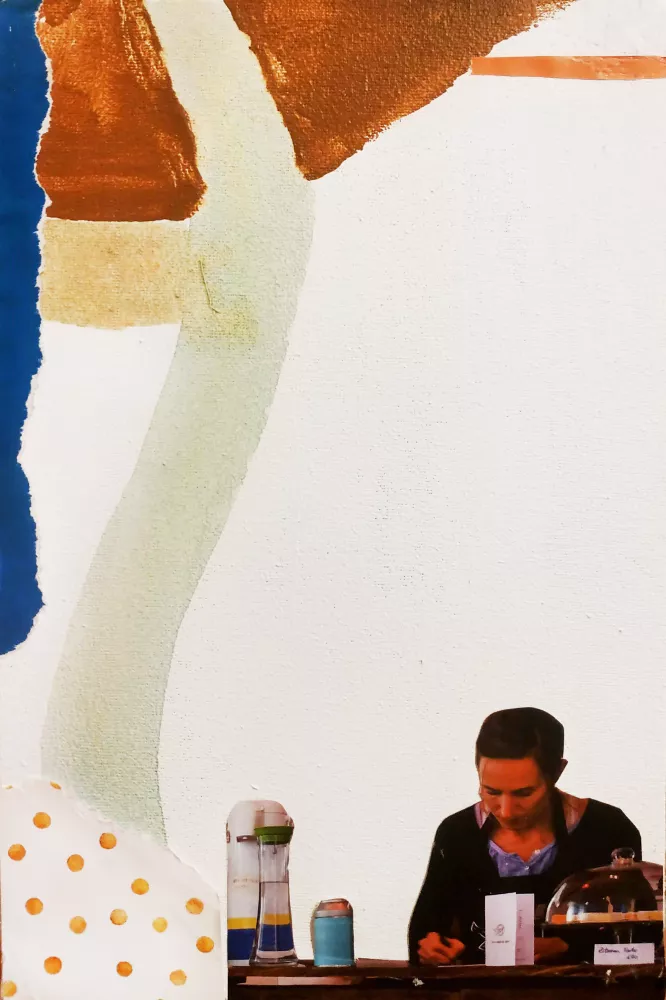 My collages associate with and shape themselves in relation to today's society, with some irony and satirical tone. I combine traditional painting techniques with the modern, glossy, and shiny world. I try to present this duality in a harmonious way. My works are usually based on printed photos and headlines, or even full pages of women's magazines that have attracted my interest. The final image is formed in my head based on a fragment of a photo or title, or even the color of a page which I must in all conditions liberate from the magazine's captivity to raise all this to a higher level: the perfection created by mass media.
