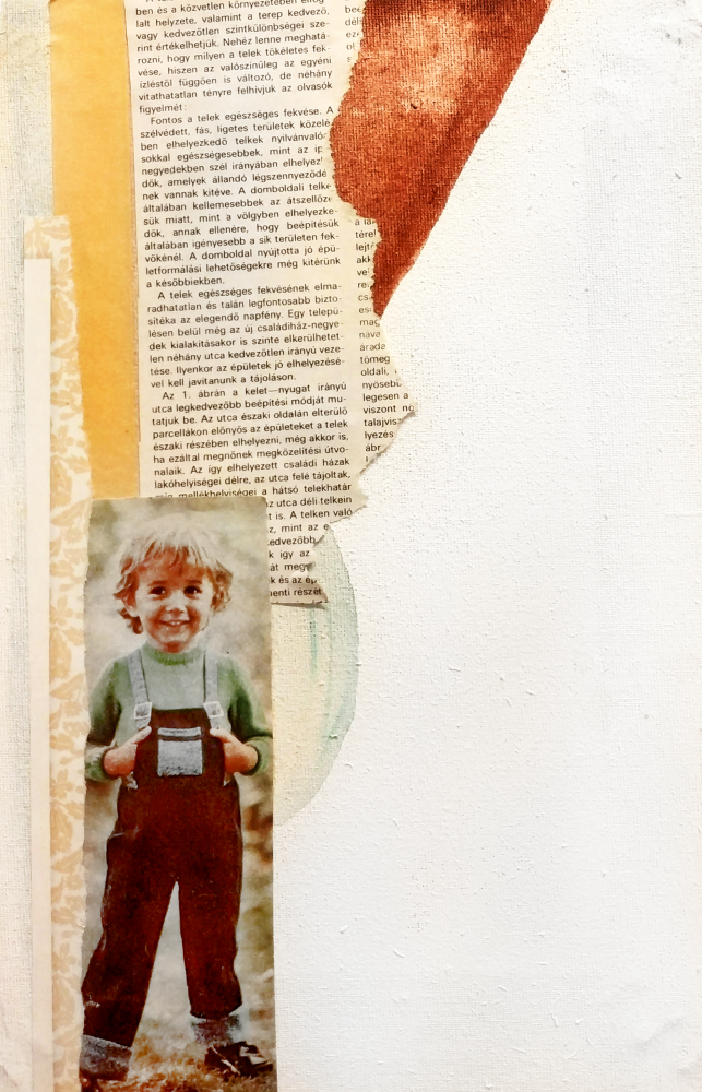 My collages associate with and shape themselves in relation to today's society, with some irony and satirical tone. I combine traditional painting techniques with the modern, glossy, and shiny world. I try to present this duality in a harmonious way. My works are usually based on printed photos and headlines, or even full pages of women's magazines that have attracted my interest. The final image is formed in my head based on a fragment of a photo or title, or even the color of a page which I must in all conditions liberate from the magazine's captivity to raise all this to a higher level: the perfection created by mass media.