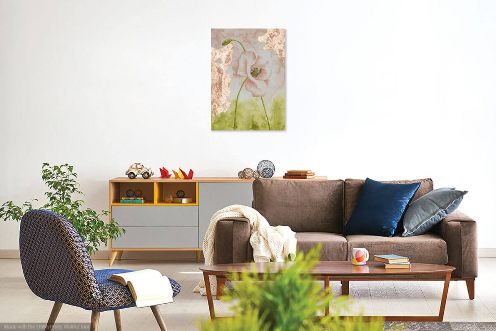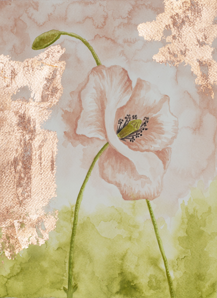 “Rose Gold Wild” is a painting that follows the style of realism and it is inspired by nature. Delicate, gentle watercolor with a floral motif complemented by gold rose patina changing under the influence of light. An ideal choice for every romantic soul out there who prefers pastel colors instead of bright.