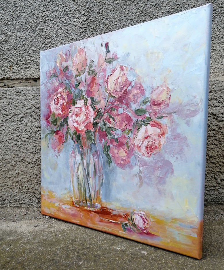 This original painting is done in oils on stretched cotton canvas. Canvas is gallery wrapped. Size 60x60cm. Depth 2 cm. The sides are painted so the painting could be hang as it is without a frame if preferred. The painting comes unframed. It will be sent safely packed withing 4 working days after the purchase. A certificate of authenticity will be enclosed.