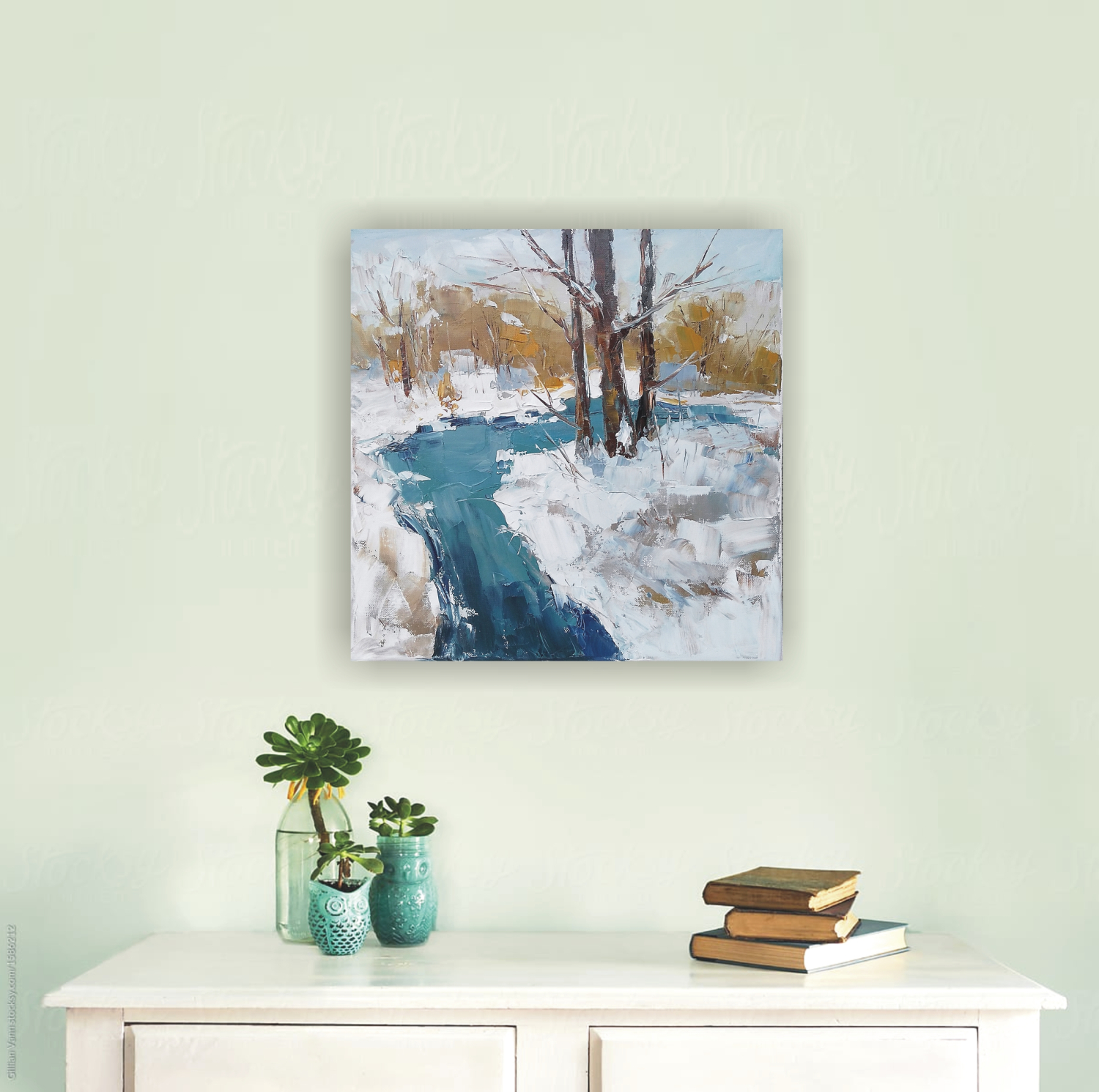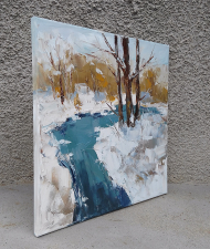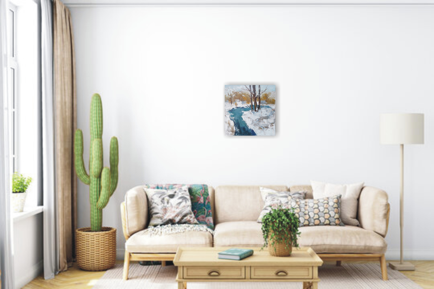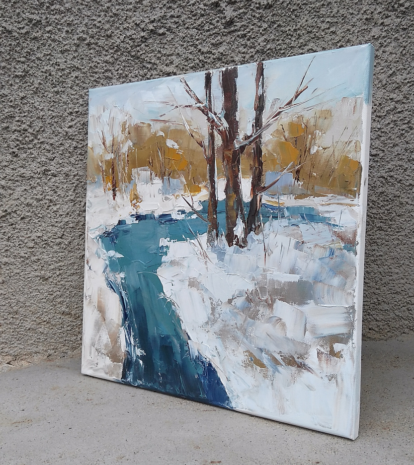 This original oil painting is made on stretched cotton canvas. Size is 40x40cm. Depth 1 cm. Canvas is gallery wrapped and painted on the sides, so the painting could be hang as it is without a frame if preferred.
