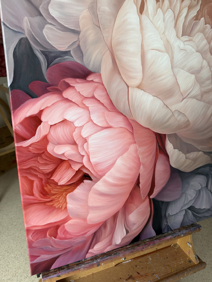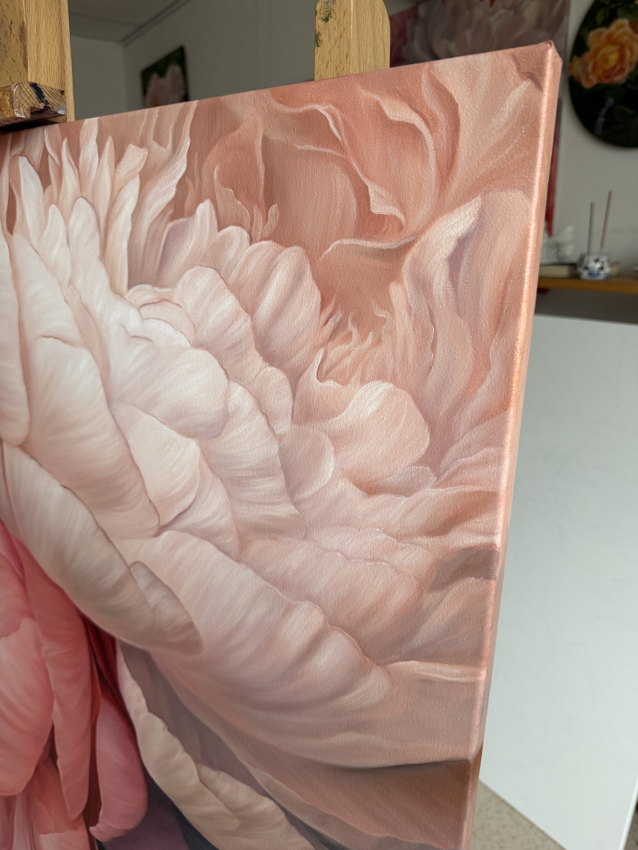 Эта работа — о состоянии, не требующий обочной. Пионы раскрываются в мягкой игре света и тени, где каждый лепесток имеет свой объем и дыхание. Сочетание теплых и холодных оттенков создает глубину и баланс. Картина не привлекает внимания резко — она постепенно погружает в ощущение тишины, покоя и внутреннего спокойствия. Речь идет о мягкости, в которой заключена сила.Need more help?