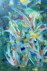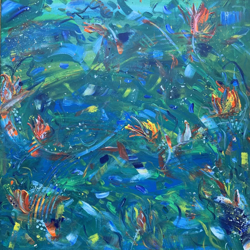 With her vibrant abstract paintings, Valentine is able to draw you into a world of emotion and exploration. Due to her experiences living abroad, she cultivated a desire keep improving and further developing herself. As can be seen through her paintings, Valentine takes an energetic approach to life. Get to know Valentine more here.