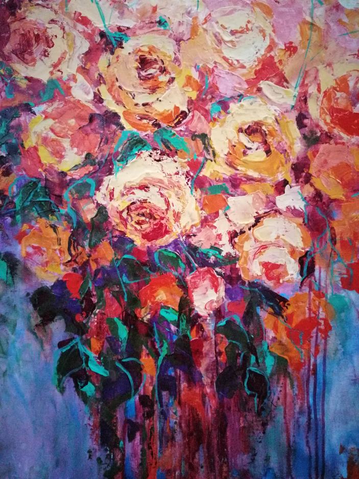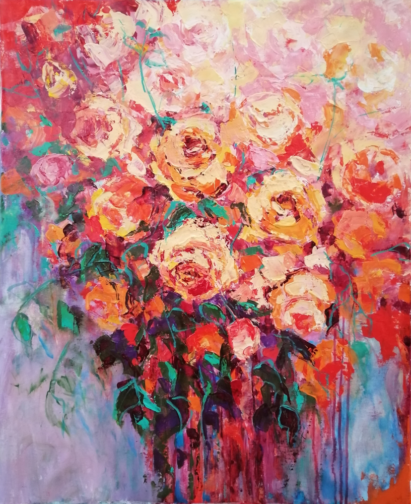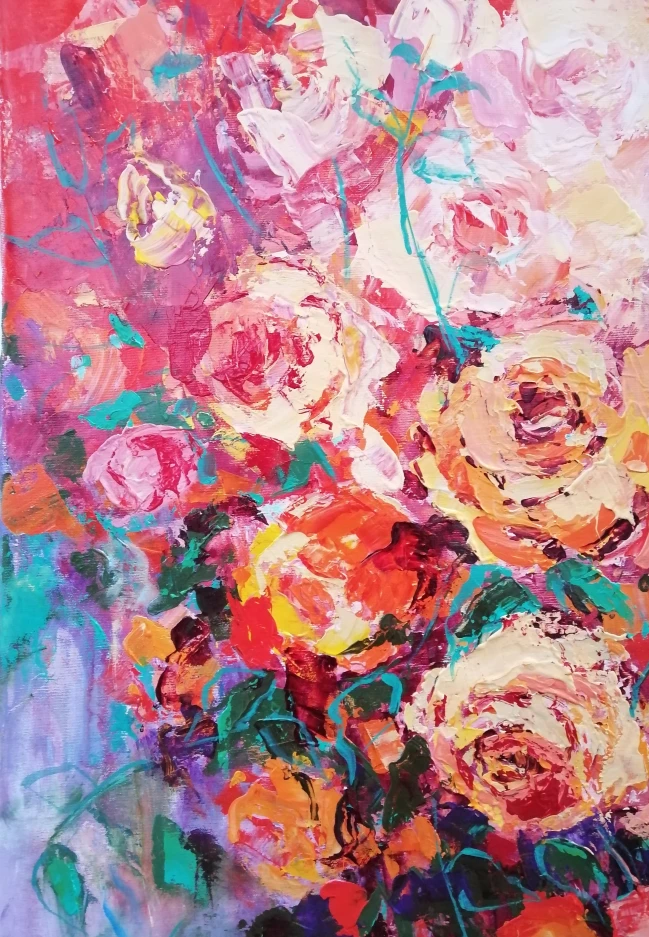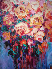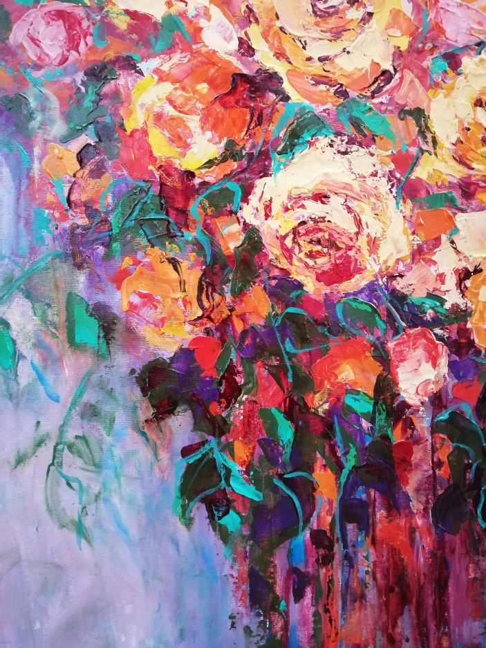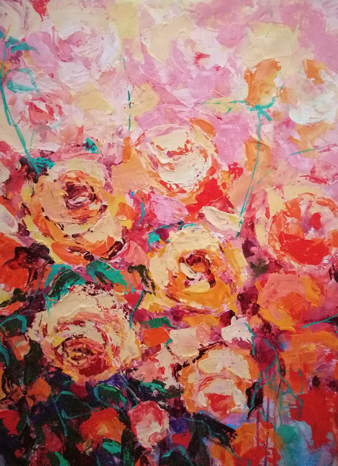 I love roses so much. So much that I find in this love also the deepest passion for all things that touches my soul. I usually paint them with a palette knife and in one breath making the viewers see and feel their own passion for life and love.