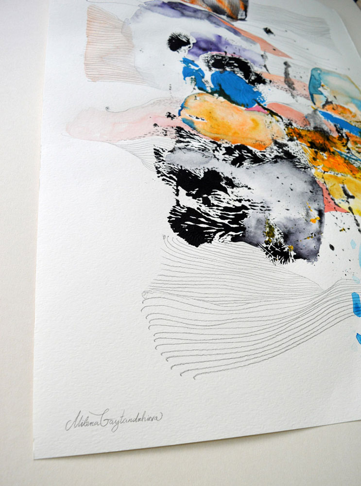 Original watercolor abstract mixed media painting by Milena Gaytandzhieva