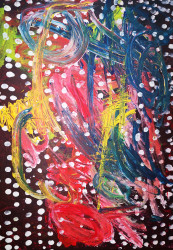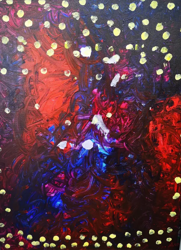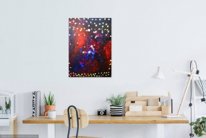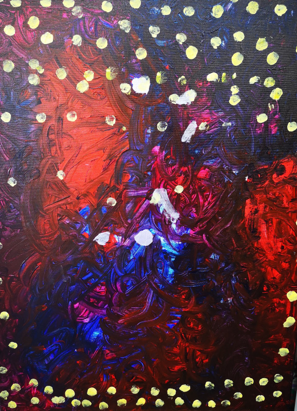 “Star Night” is an acrylic painting made on canvas. With its abstract style and its great size of 100x70 cm, it would fit perfectly in wide and open spaces and would fill the emptiness of a room!