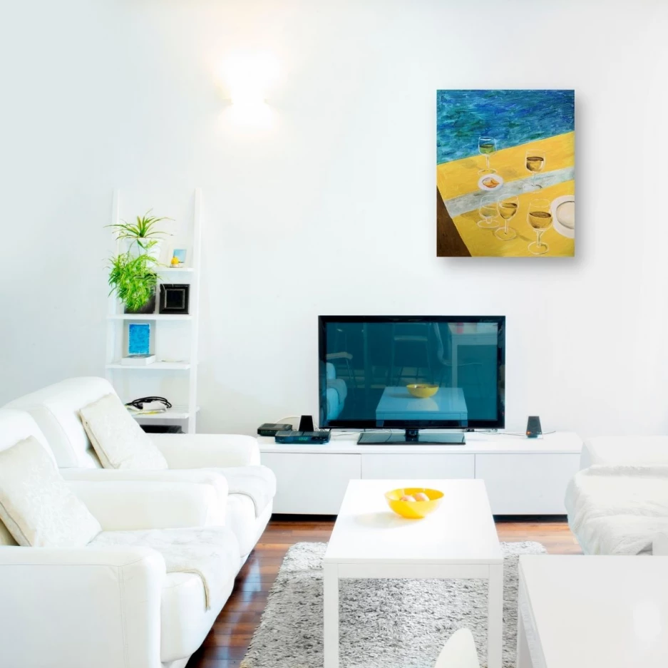 The "Summer Lunch" is a lunch I have shared with my family by the Mediterranean Sea. It is one of the most calming, beautiful, and enjoyable memories that I possess -- you can just feel the light breeze of the sea.