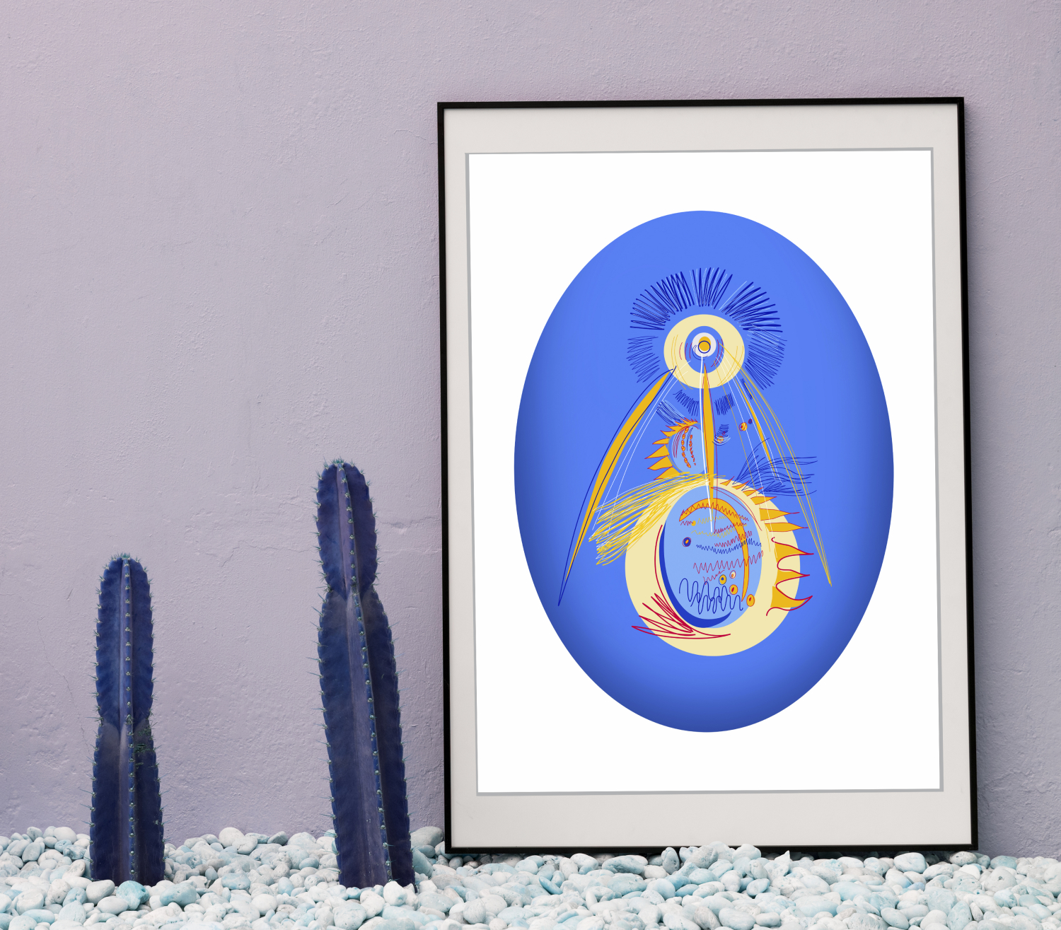 The "Sun Rays 1" is a limited edition museum-quality fine art print. The edition includes only 10 items. To create this digital painting, I used Adobe Illustrator and Adobe Photoshop. The print is made with giclee technique in archival quality on world-recognized Hahnemuhle paper.