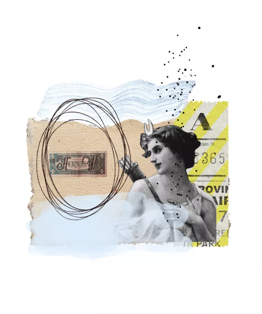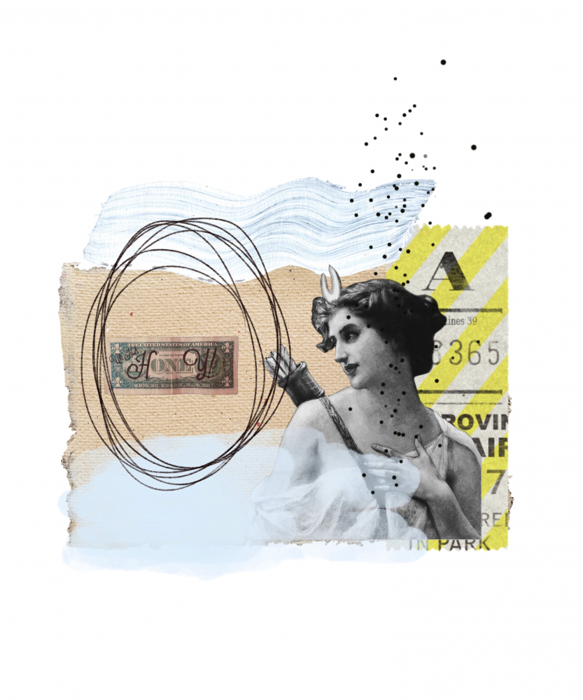 In today’s society, there is a heavy marketing of materialism. With this art piece, I wanted to express the impact that money and materialism has on our current lives. The different elements and structure come together to tell the sad love story between humanity and materialism.