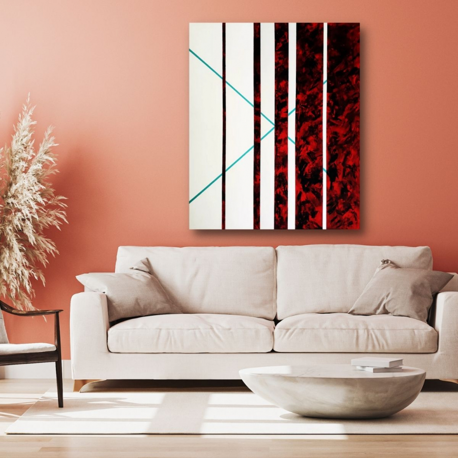 This artwork is part of the series “Synthesis”. This series was a part of artist’s degree work when she got her painter's degree in the year 2019. All the art pieces of this series are abstract paintings that illustrate different shapes. They are made with acrylic color on stretched canvas.