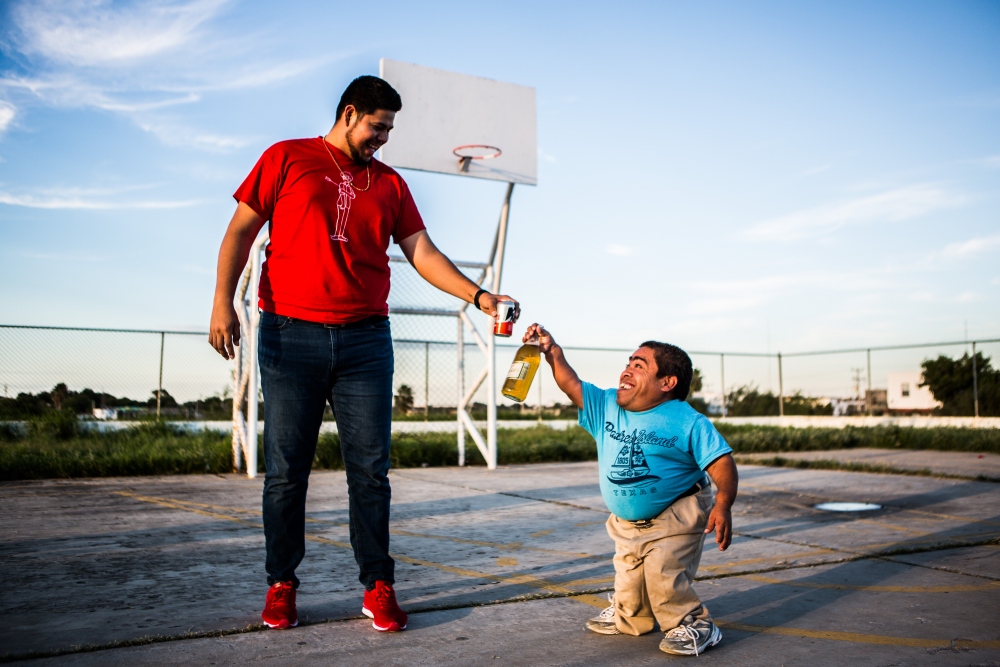 This piece from the satirical LIFE IS GOOD series about killing stereotypes of daily life. The tallest and shortest man of Nuevo Laredo met for the first time and played basketball together.
