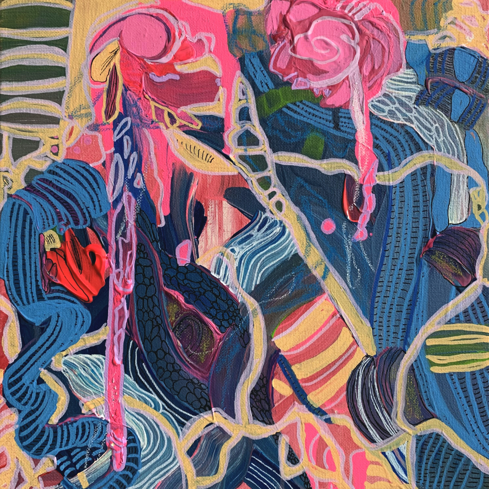 Through abstract expression I unearth the natural beauty and energy within, experienced as peaceful blues and greens combined with bright pops. Spontaneous layered marks and tangles capture moments of complete release and confidence in self and movement. Nurturing safe spaces for a raw release of one's true colors, free of judgment.