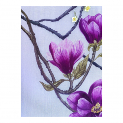 Material: silk (pure silk veil with transparent texture, that is supported by a purple sheet of cardboard)