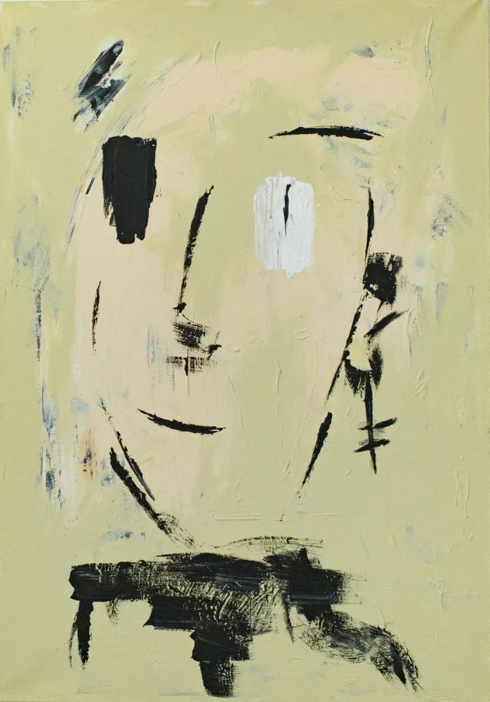 This abstract painting with a modern style represents a portrait of a man who wanted to become an underground jeweler.