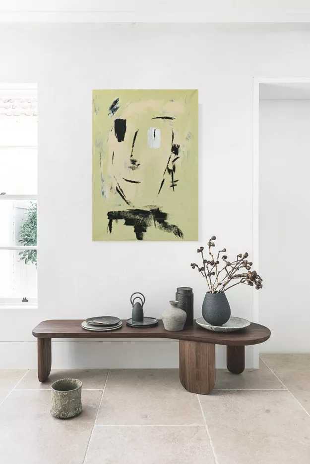 With the neutral colors and the size of 70x100 cm, it would fit in any kind of space. The medium used for this painting is acrylics and the material used is a canvas.