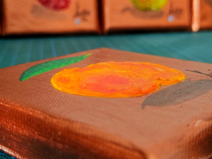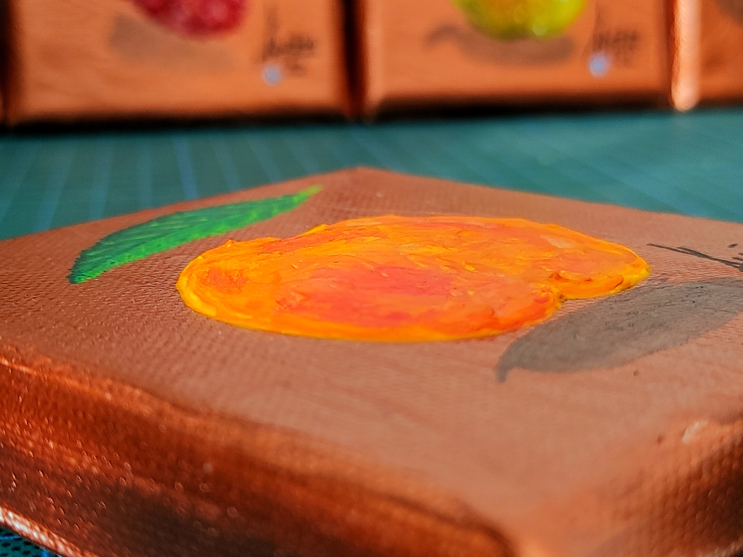 With this I've managed to paint the fruit so it stands out. Next to it is a leaf of a certain fruit and in the lower corner is painted a blue eye representing the authenticity of the BLUEVERZE galaxy.