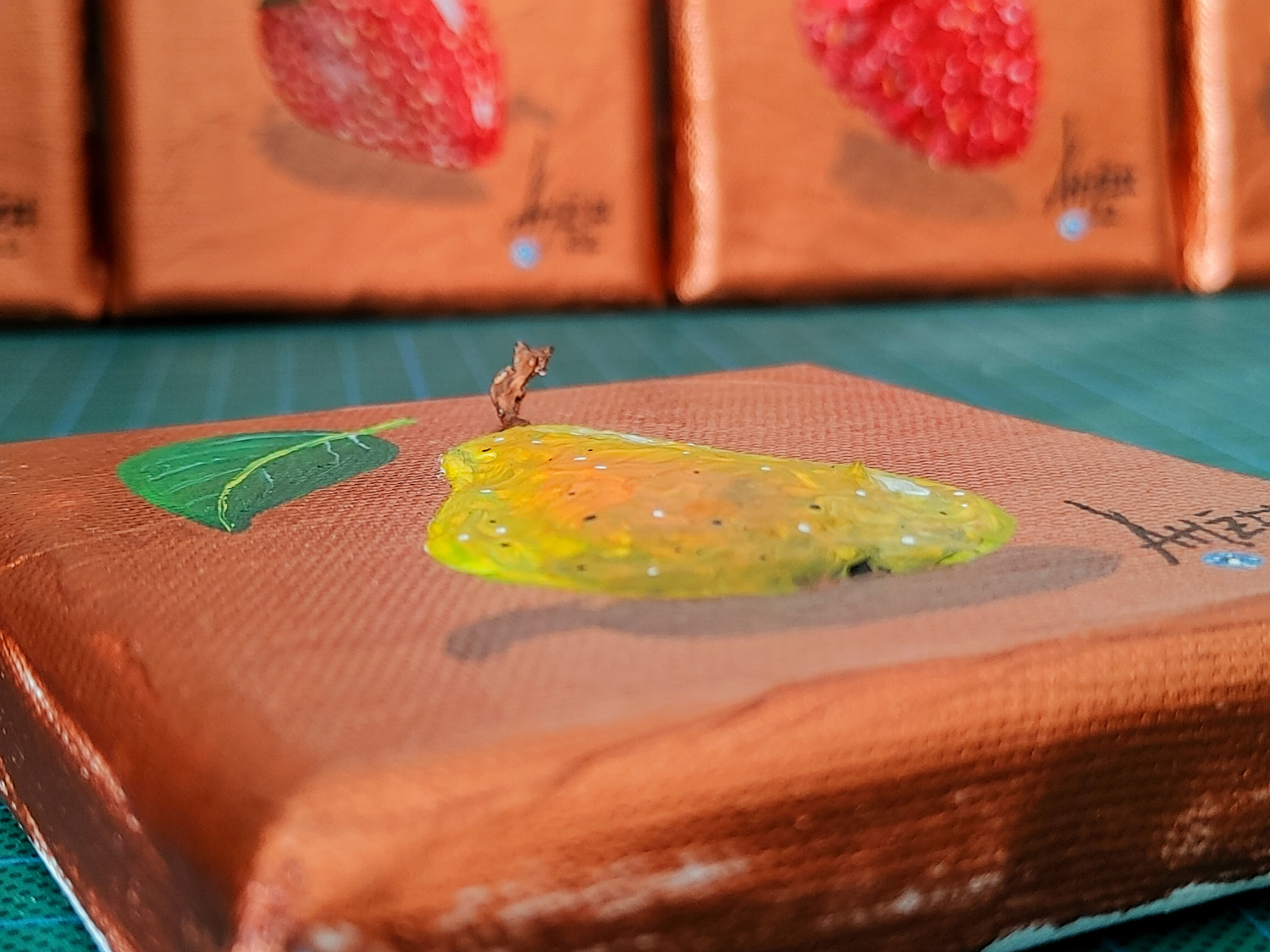Each painting size is 10 X 10 cm. Acrylic on canvas, made by Anžo, 2022.