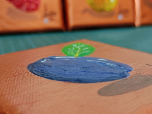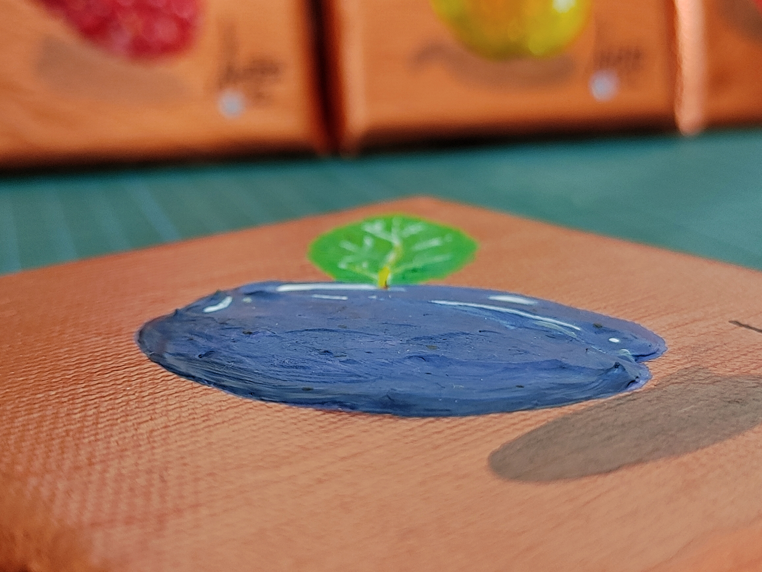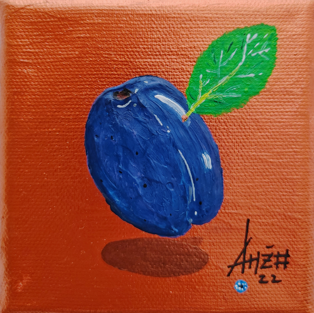 With this I've managed to paint the fruit so it stands out. Next to it is a leaf of a certain fruit and in the lower corner is painted a blue eye representing the authenticity of the BLUEVERZE galaxy.