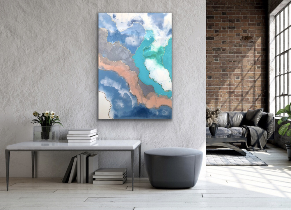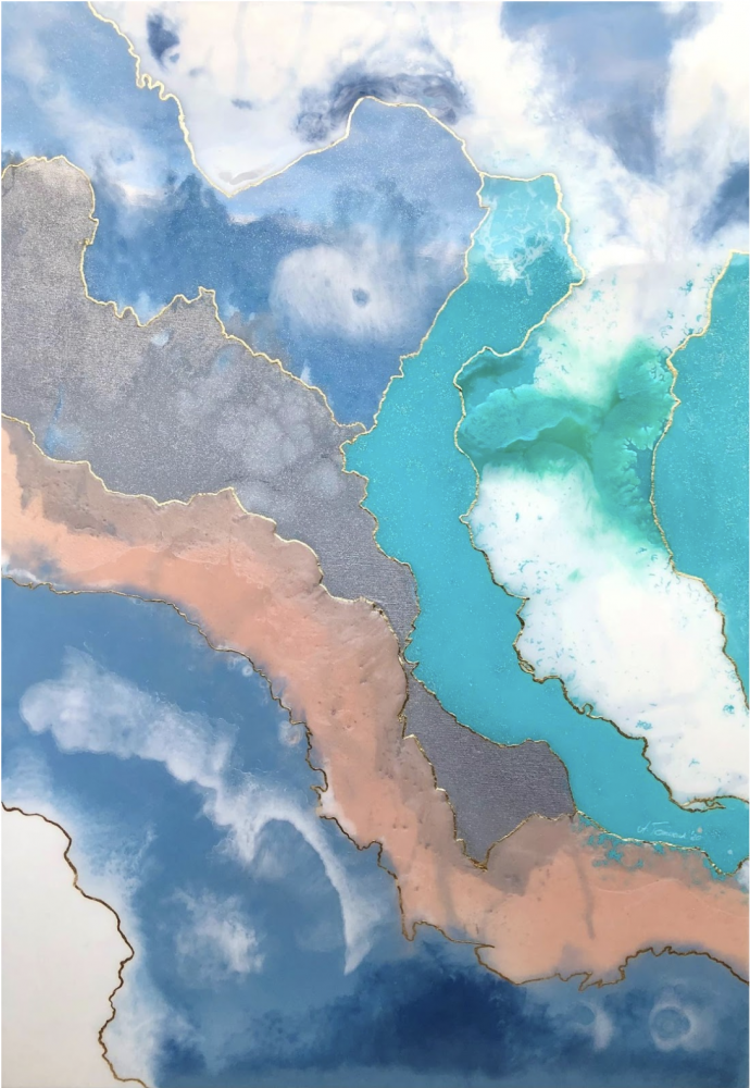 A mix of acrylic paints and resin melts with pigments to create a harmonious combination. Gilding separates, prevents, marks ... consciously.