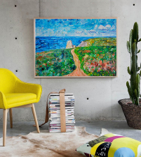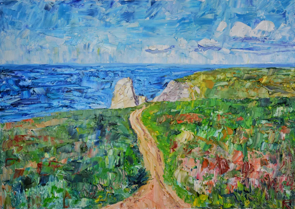 This painting is original, authentic, one-of-a-kind, 100% hand-painted. Created using oil colors on canvas. Free palette knife work, impressionistic impasto style. The colors are bright and positive. It calms your mind and rises up your mood. Ideal as a home decor or a beautiful gift.