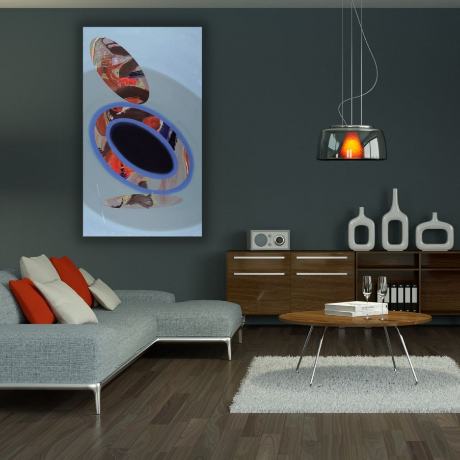 The images inside the eclipses represent various collages from everyday life with everything it brings, including small visual absurdities, animals, or musical and historical suggestions. Through each painting, there is an aspiration for the contact and connection with the universe and time, through human, natural, and animal elements from the earth. Colors create the core phenomenon here. The tones and intensity, as well as the subtle shading, emphasize the mysticism of the universe.