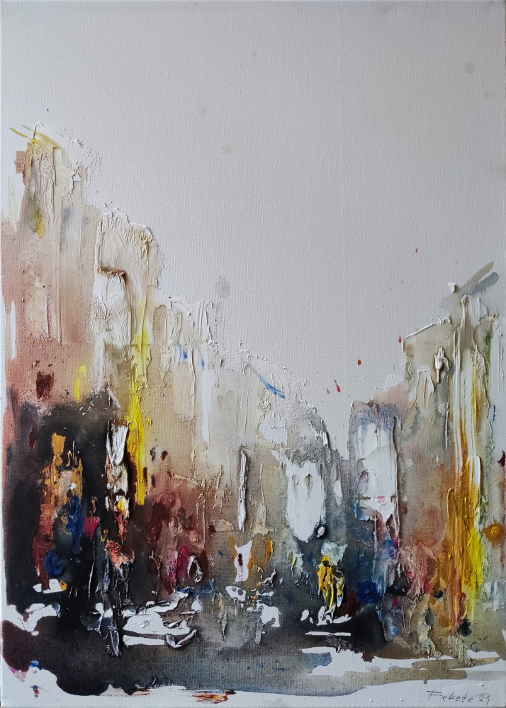 For me, the Greek, picturesque villages are like backdrops in a play. I wasn't in Greece that often but it was enough that I had some dreams that finally brought me to paint on this topic.